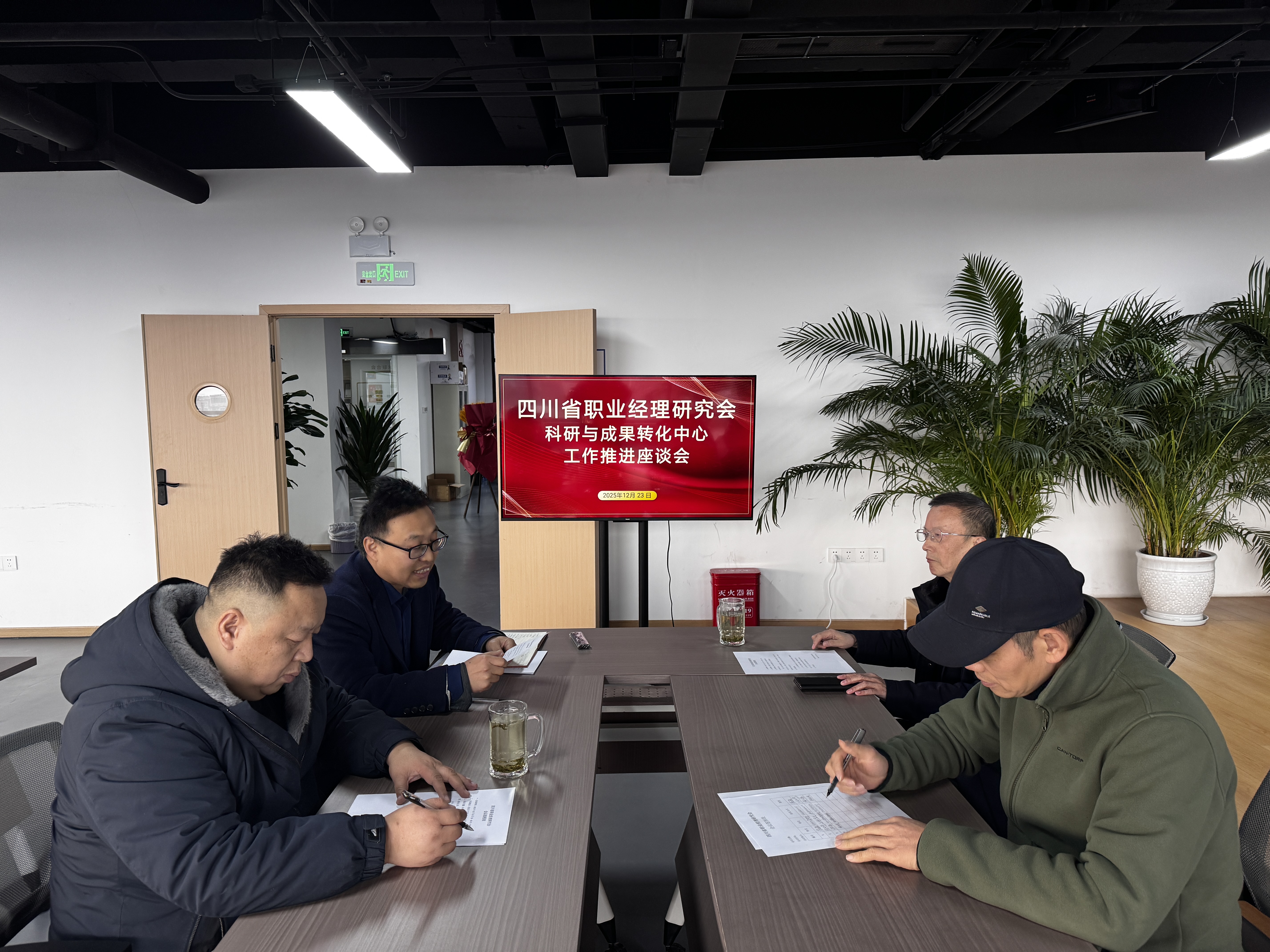 (本网讯)2025年12月23日下午,四川省职业经理研究会在武侯区万兴路252号10楼会议室组织召开了科研与成果转化中心工作推进会议。执行会长兼秘书长袁亮、执行秘书长穆国库、秘书处干事杨兴悦以及科研与成果转化中心的发起人杨毅、何淡宁等同志参会,会议由穆国库主持。